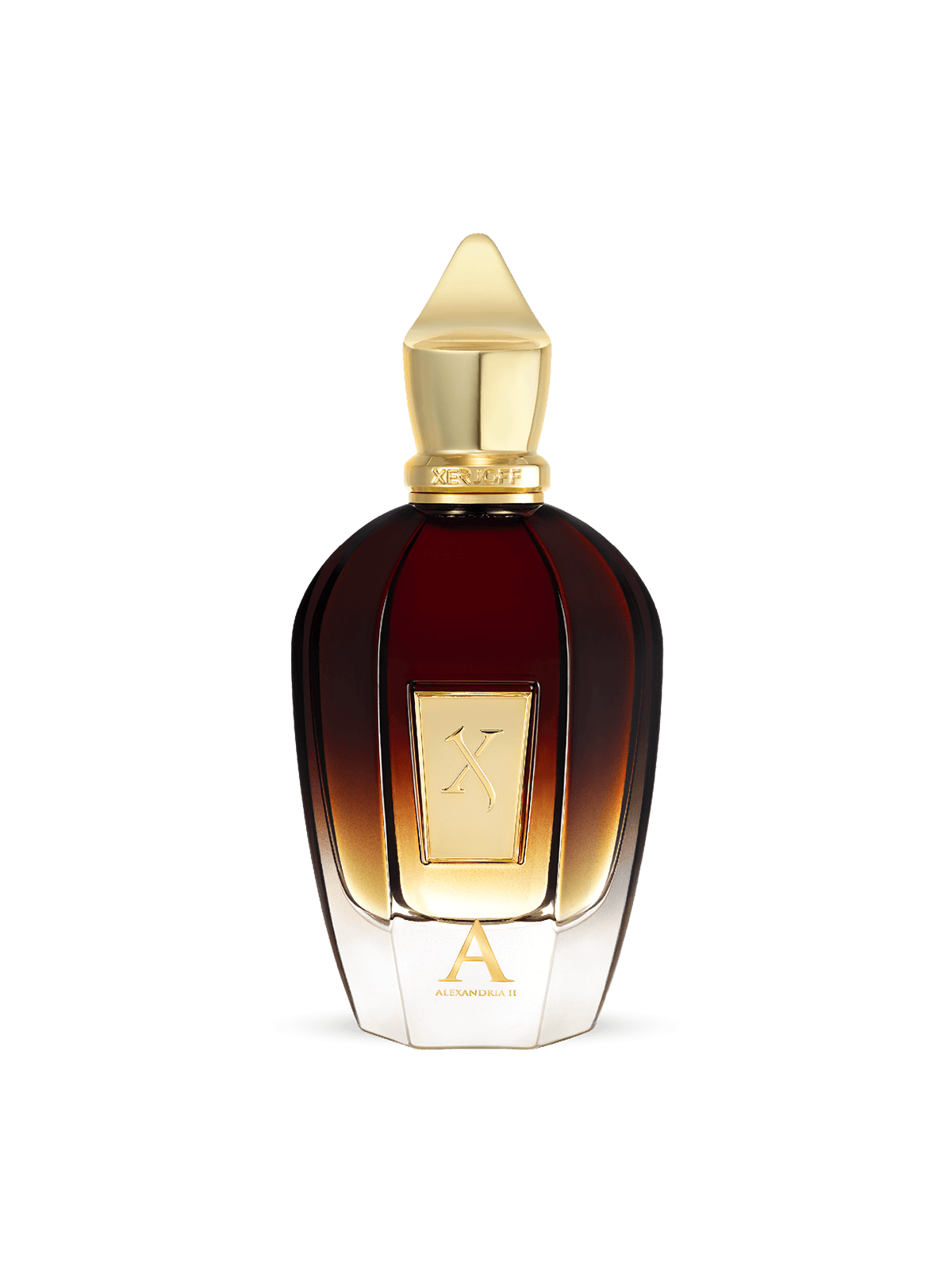 Alexandria II Xerjoff s'ouvre sur des notes fruitées de pomme qui rencontrent la lavande florale et le bois de rose, il mène à un cœur classiquement oriental de bois de cèdre, de muguet et de rose bulgare.