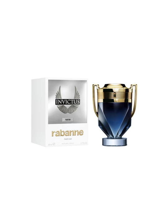 Atteignez les sommets et révélez le demi-dieu qui sommeille en vous, avec le nouveau INVICTUS PARFUM de Rabanne. INVICTUS PARFUM, un sillage boisé aromatique aquatique puissant, un clash olfactif divin. L'alliance d’ingrédients d’exception, intensément concentrés : contraste entre lavande fraiche, savon noir sensuel et bois de santal addictif. Facetté en forme de V et orné d’un capot or, le trophée iconique de INVICTUS devient plus puissant que jamais. INVICTUS PARFUM, défie l’impossible et repousse les limites de l’inaccessible.