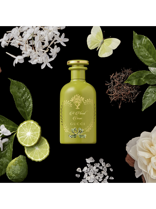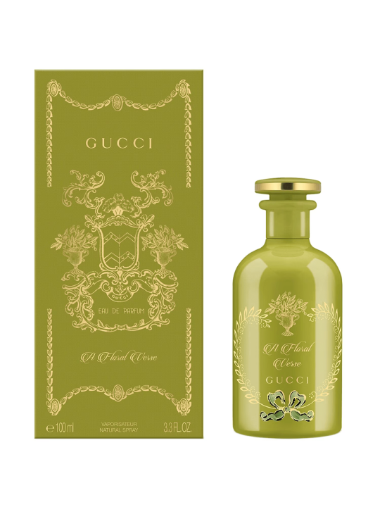 The Alchemist's Garden A Floral Verse de Gucci révèle la poésie de la nature, faisant de votre peau la page sur laquelle l'histoire s'écrit. Mélange des exaltations les plus délicates de la nature, cette eau de parfum unisexe d'un vert floral enveloppe le jasmin sambac indien et les feuilles de thé noir du Sri Lanka dans un nuage de musc blanc. Appliquez ce parfum Gucci sur votre peau et superposez-le avec d'autres parfums Alchemist's Garden afin de révéler votre poésie personnelle, de jour comme de nuit.