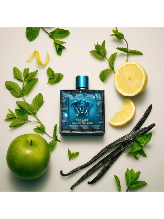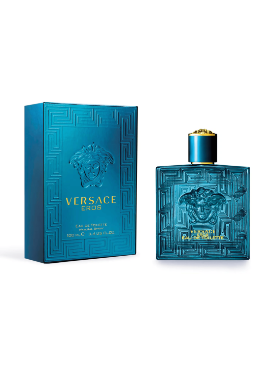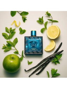 Masculin et affirmé, Eros est une eau de toilette sensuelle qui associe des notes boisées, orientales et fraîches,