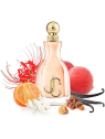 Ses notes de tête débordent d’enthousiasme : les notes pétillantes de la mandarine bousculent les nuances suaves et veloutées de la pêche.